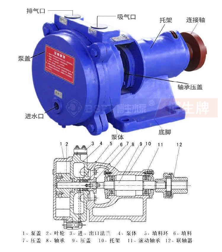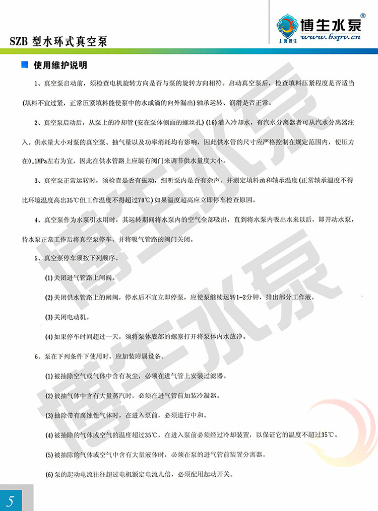 SZB懸臂式水環(huán)真空泵為單級單吸懸臂式水環(huán)真空泵,泵的出、入口對稱偏心向上。可供抽吸空氣或其它無腐蝕性、不溶于水、不含固體顆粒的氣體。吸入壓力為-0.086Mpa。目前制造的SZB型水環(huán)式真空泵型號有:SZB-4、 SZB-8。其中4(8)表示當柱高為520毫米時的氣量(升/秒)。可廣泛用