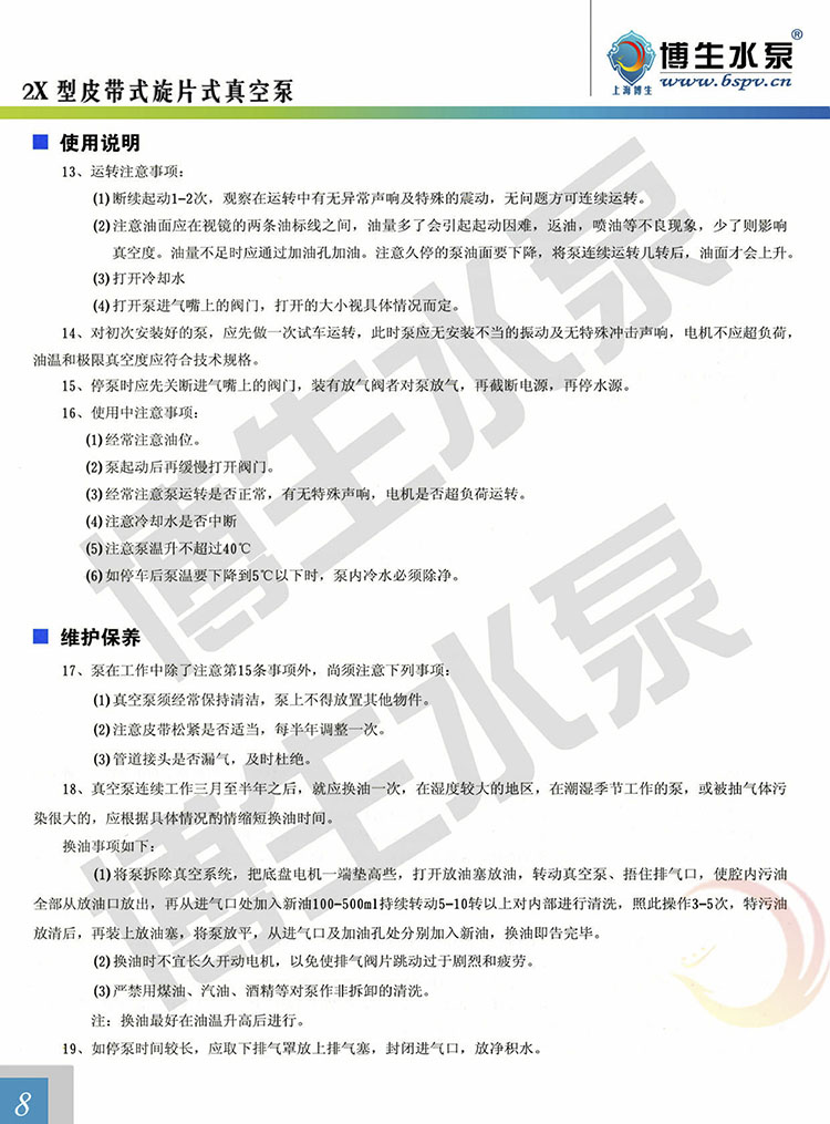 3、真空泵一般在不低于5℃的室溫及不高于90%的相對溫度的環(huán)境內(nèi)使用。